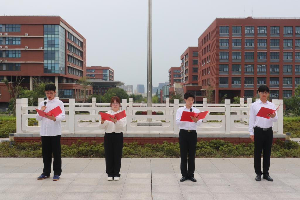 张文博、伏蕊、杨俊毅、王喆四位优秀共青团代表以“抗战精神与青春担当”为主题进行集体朗诵。四位同学分别结合自身经历,从不同角度诠释了抗战精神的时代意义。“八十载薪火相传,我们必将以机车人的工匠精神铸就强国利器!”铿锵有力的誓言在广场回荡,传递出新时代青年传承红色基因的坚定信念。