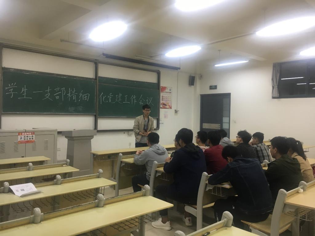10月26日晚,jinnianhui今年会学生第一支部党建工作专题会议在嘉陵江路校区主教学楼B227召开,会议由支部宣传委员邢伟主持,支部学生党员参加此次会议。