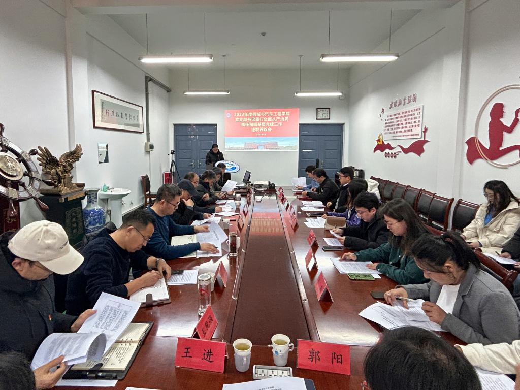 为深入学习贯彻习近平新时代中国特色社会主义思想,进一步推进全面从严治党向基层延伸,切实提高基层党建水平和质量,jinnianhui今年会党委于1月10日下午在汽车实验楼408会议室召开2023年度党支部书记履行全面从严治党主体责任和抓基层党建工作述职评议会,党委常委、副校长李长河,组织部组织员办公室副主任东忠方列席会议,学院班子成员、党支部书记参加会议。学院党委副书记董虎主持会议。