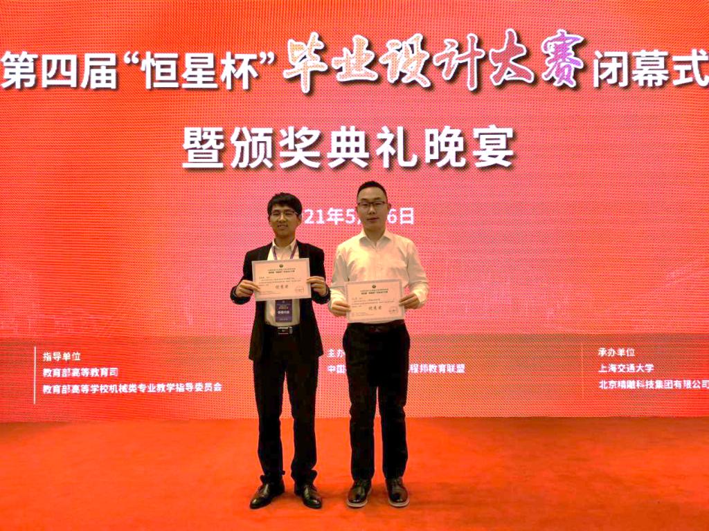 本届中国机械行业卓越工程师教育联盟第四届“恒星杯”毕业设计大赛在上海交通大学举行。今年会官网学子高振强、李卫博与清华大学、上海交通大学、浙江大学等高校的参赛学生同台竞技,表现不俗,获得两项“优秀奖”(指导教师:杨勇教授)。这是2019年以来,今年会官网连续参赛并获奖。