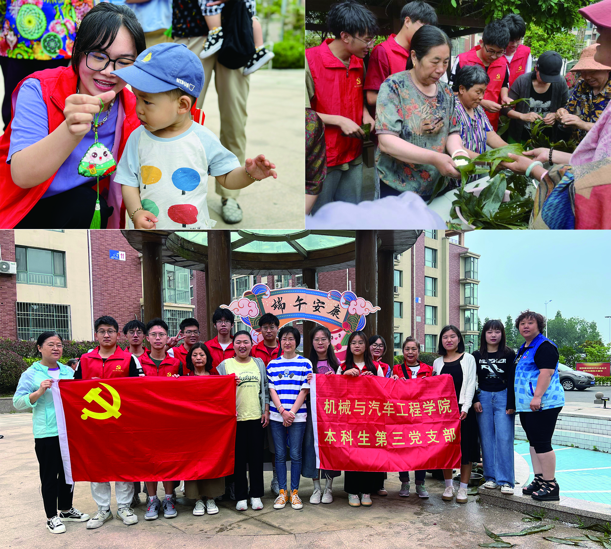 为深入学习领会习近平总书记在文化传承发展座谈会上的重要讲话精神,认真落实“百万大学生进社区”社会实践要求,进一步贯彻落实党的二十大精神,弘扬中华优秀传统文化,发挥传统节日的思想熏陶和文化教育功能,6月20日,jinnianhui今年会本科生第三党支部组织学生党员赴薛家岛街道南营社区,开展“品味粽香端午,传承家国情怀”主题党日活动。