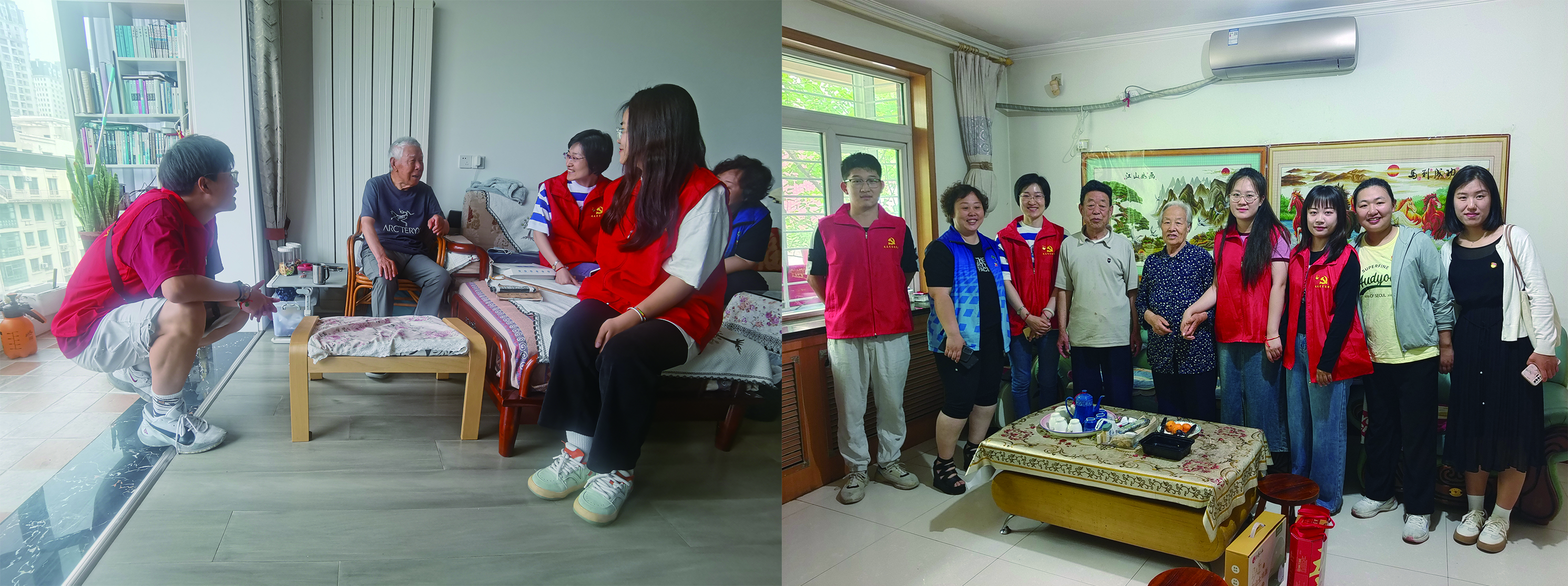 最后,南营社区副书记孙爱玲带领着大学生们走进社区,走访有50多年党龄的老党员们,为他们送去鸡蛋、粽子等慰问品。学生们聆听他们回顾往昔的光辉岁月,讲述革命先辈的红色故事,讲述党的故事。学生丁朔表示,“每一位老党员的故事,都是一段艰辛奋斗创造的辉煌,也是一堂生动感人的好党课。作为新时代青年学生,我们要接好时代的交接棒,走好新时代的赶考路,确保党的事业‘薪火相传、后继有人’。”整个活动过程中学生们维护现场秩序、清理垃圾...与社区居民们相处温馨和谐、文明耐心,受到大家的一致好评,充分展现了理工学子的担当、责任意识和奉献精神。学生们在实践中真切感悟到传统文化的魅力,在互动中体验端午的乐趣和温情,激发了当代青年对中国优秀传统文化的自信心和自豪感。