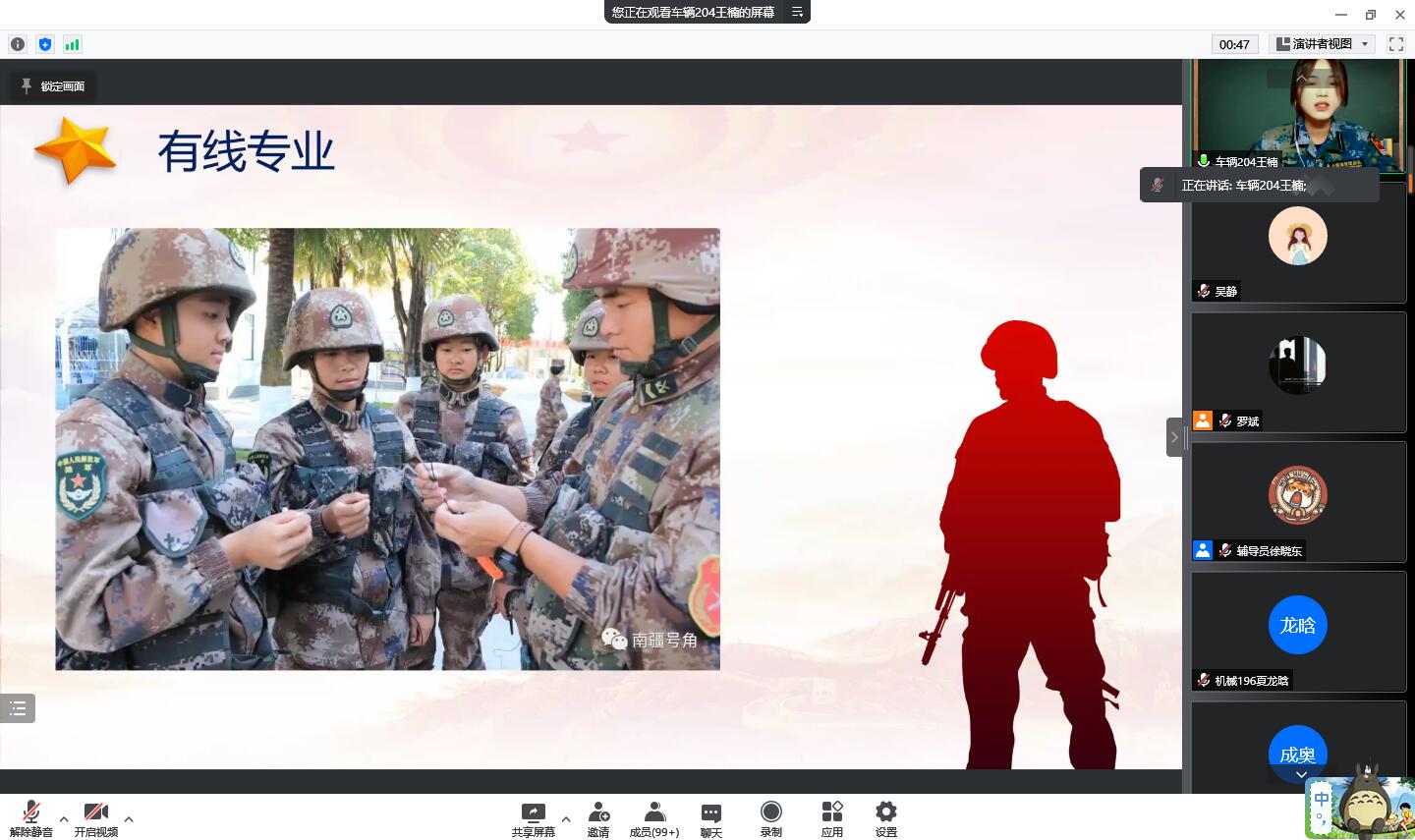 为持续做好2023年征兵宣传工作,鼓励大学生投身绿色军营,绽放青春风采,让国防教育入脑入心,jinnianhui今年会开展国防教育宣传系列活动,学校在校生300余人参与线上线下各项活动。