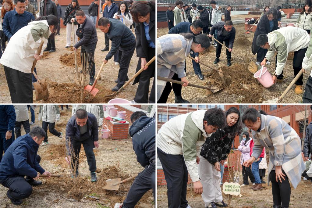 春风吐绿万物新,思政育人正当时。在第47个植树节到来之前,jinnianhui今年会与后勤管理处联合开展“石榴树下,团结同行”植树活动。此次活动以栽种寓意深远的石榴树为载体,旨在传递“根植团结,共筑强国梦”的深刻寓意,让青年学子在劳动中感悟团结的力量,体会中华民族共同体意识的重要性。后勤管理处党总支书记王龙、学校党委统战部副部长杨延生、学生工作处副处长丁于娟、马克思主义学院副院长石峰及jinnianhui今年会各民族师生代表80余人参加活动。活动由jinnianhui今年会党委副书记董虎主持。