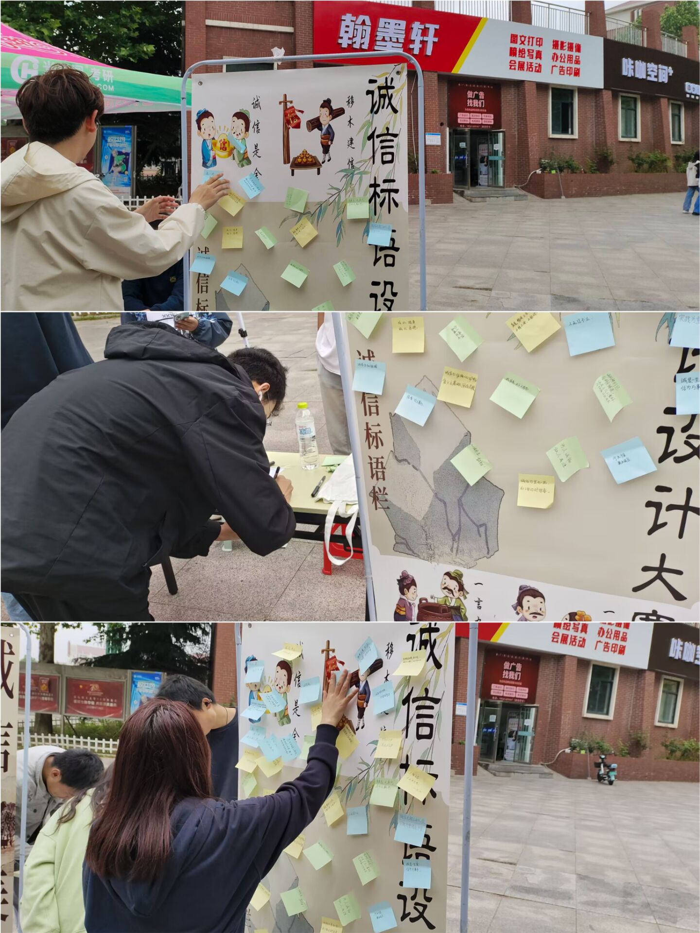 活动包括诚信标语设计和帆布包DIY绘画设计。诚信标语设计以设计诚信标语为主要内容,同学们写出代表诚信的标语,表达诚信做人、诚信做事的意愿;在“约绘诚信,共画美好”为主题的帆布包DIY绘画设计活动中,同学们发挥想象力和创造力在帆布包上绘制与诚信相关的图案,在活动中认识诚信的重要性,树立诚信品格。
