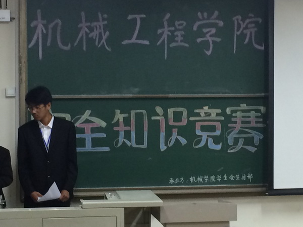 11月12日晚,机械学院安全知识竞赛在B204顺利进行,本次竞赛共有21支队伍参加,共分四轮,每一轮分别计算分数,最后四轮分数累积,分数最高队伍获胜。