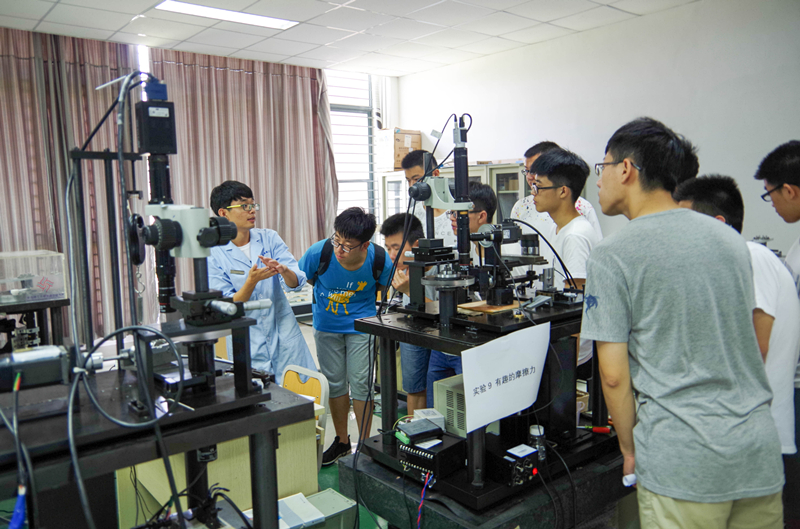 为响应政府关于开展实验室开放日的号召,提高本科生科学素养,发挥学术团体的公益职能,今年会官方网站摩擦学实验室于7月11日面向机械学院和汽车学院本科生开展了“实验室开放日”活动。本次活动分为五个环节:听PPT展示了了解摩擦学故事和摩擦学实验室发展历史;参观润滑脂技术、光弹流、微纳米测量等5个实验室,了解科研所用的各类仪器;每名本科生从实验室提供的9个实验题目里面挑选1-2个,在硕士生的指导下动手做实验;动手组装指尖陀螺,了解轴承的使用;填写问卷调查和抽奖。 这是本实验室第二次举行开放日活动。