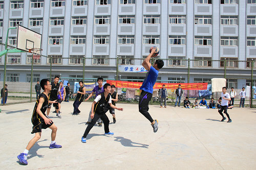 4月26日,机械学院篮球联赛决赛在篮球场举行,经过小组赛和淘汰赛,决赛在材料103与机械101之间展开。团总支书记贺治成以及各班级同学到赛场观战。