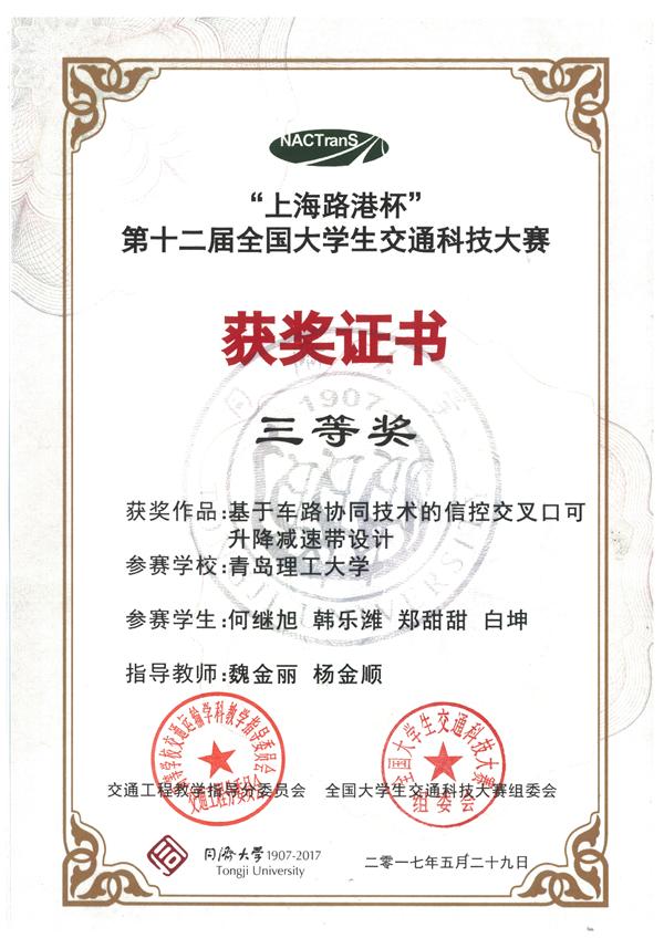 5月29日,第十二届全国大学生交通科技大赛在同济大学落下帷幕。今年会官网推荐的作品获得二等奖两项,三等奖一项。