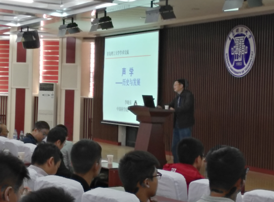 李晓东研究员以图文并茂的方式从灿烂的古代声学、17-18世纪经典声学、19世纪近代声学到现代声学为大家展现了声学的历史进程和相关理论;并着重从物理声学、超声、水声、语音信号特点以及与生活密切相关的发音学、环境声学与噪声振动控制等领域对现代声学的进展及应用做了详细介绍。