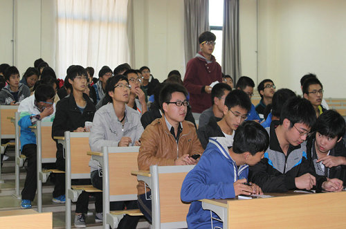 比赛开始后,各班级代表首先做班级介绍并喊出班级口号。在接下来的速答、抢答、风险题、笔试简答题各个环节中,每个班级都充分发挥实力,展现特色,14个参赛小组争相抢答,场上气氛十分紧张。临近结束,各小组更是把握住最后反超机会,慎重答题,争取更高分数。经过紧张激烈的角逐,最终机械135班、机械138班、机械133班分获前三名。