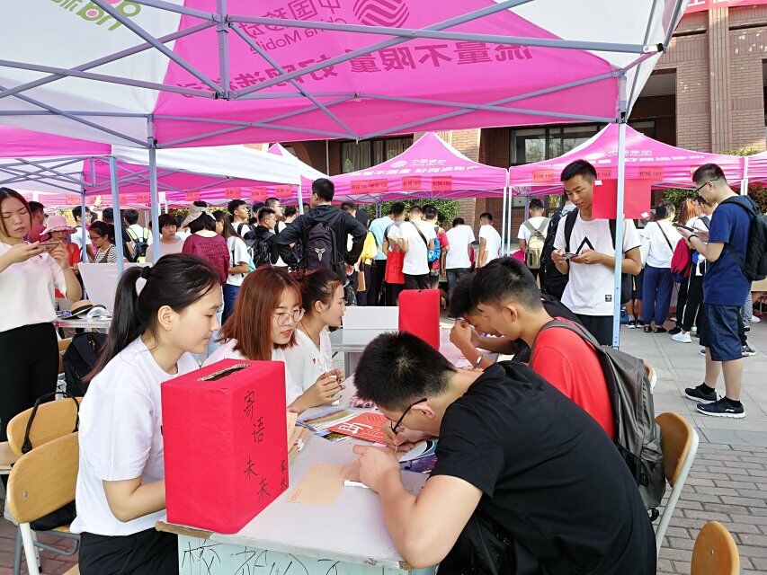 特色迎新,亮点纷呈。设置党员先锋岗,迎新送温暖。jinnianhui今年会在迎新现场设置了党员服务区、党员先锋岗,全体党员佩戴党徽,亮明身份,开展志愿服务活动。在家长休息区,学生党员为新生家长递上一杯水,道一声“家长,您辛苦了”;在党员先锋岗处,开展了寄语未来主题活动,学生在明信片上或写下自己的心愿,或写下未来四年的规划,家长则纷纷写下对孩子的寄语和殷切的期盼。此次活动给同学们提供了一个与未来对话的机会,以独特的方式保存下参与者对未来的期许,由辅导员老师保存并于四年后学生毕业时还给学生本人,时刻提醒学生不忘初心,砥砺前行。