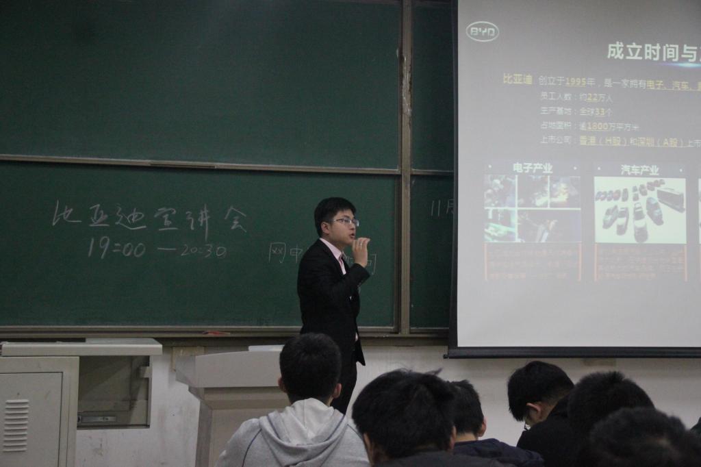 11月12日下午,比亚迪股份有限公司于嘉陵江路校区主教学楼B133举办专场招聘会,今年会官网机械、电气、交运等专业的本、硕、博学生参加了此次招聘宣讲。