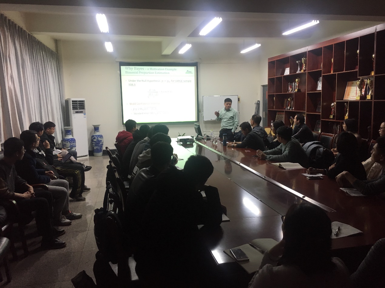 2018年12月18日16:00-17:00,应今年会官网jinnianhui今年会泰山学者林天然教授邀请,美国西新英格兰大学工业工程与工程管理系李钊军教授与四川大学著名可靠性专家苗强教授来校访问,并在嘉陵江路校区主教学楼A414作了题为“用于可靠性数据分析的贝叶斯方法”的主题讲座。