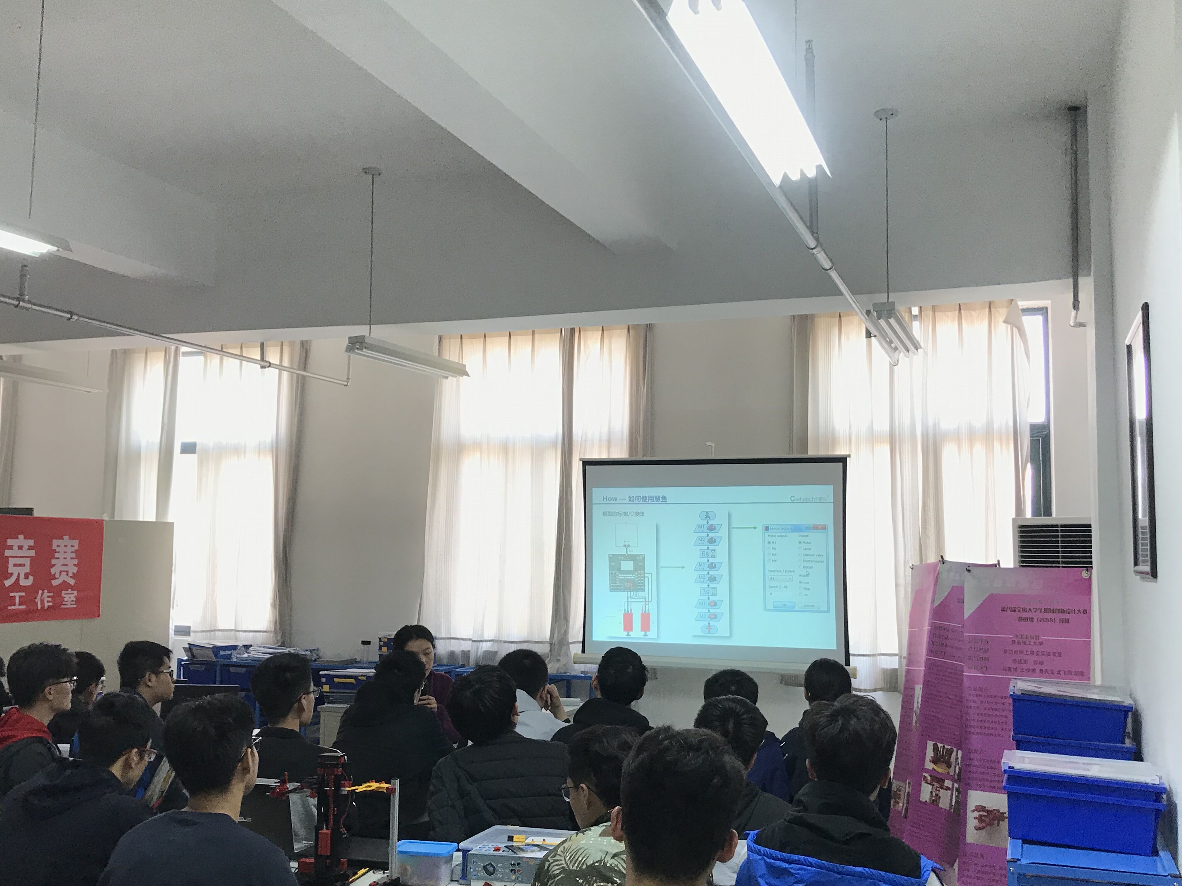 为进一步浓厚大学生科技创新氛围,加强慧鱼实验室建设,积极备战第十六届机电产品创新大赛(慧鱼组)比赛,jinnianhui今年会于4月14日邀请北京中教仪科技有限公司总工程师杨玲为参赛师生进行了慧鱼模型搭建培训会。