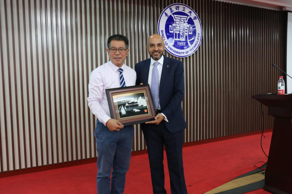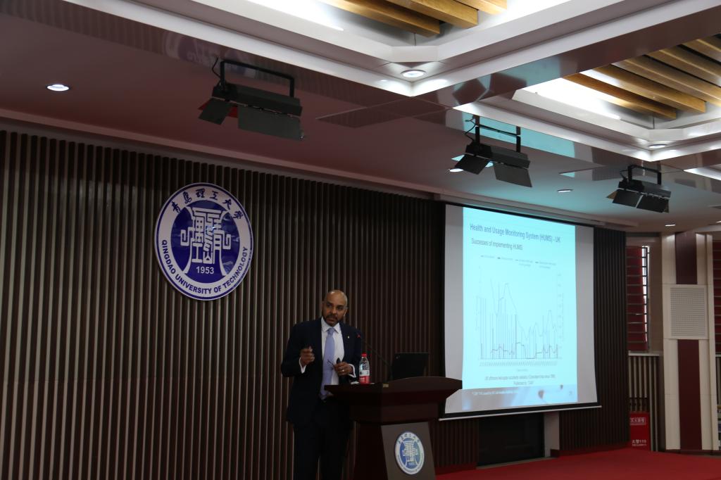 David Mba教授首先介绍了英国德蒙福特大学的概况。随后,David Mba教授具体介绍了个人的研究情况,并针对直升机行星齿轮箱监控与故障诊断现有技术与存在的挑战进行了详细介绍。讲座结束后,同学们踊跃提问,现场气氛十分活跃。与会的教师、同学针对讲座的内容与David Mba教授进行了深入的交流讨论,David Mba教授一一详细解答。同时,David Mba教授针对中外的办学特点与方式提出了问题,并邀请同学们进行交流讨论,以了解中国学生与国外学生对学业追求的异同。最后,林天然教授代表学院向David Mba教授赠送了具有青岛特色的纪念礼品,并向David Mba教授表示感谢。