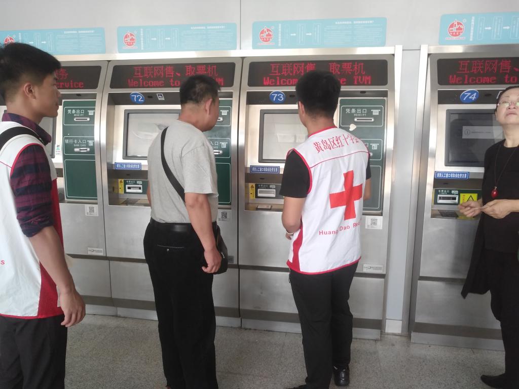 本次活动中支部成员分为三组,分别负责青岛火车站东、西、南侧的引导、服务和帮扶等工作,指引旅客顺利的进行购票、取票、入站、出站、换乘及站外的卫生清理。经过车站工作人员的培训后,支部成员走向各自的岗位,在炎炎烈日中开展情暖旅途的帮扶工作,传播爱心与关怀,极大地减轻了火车站工作人员的负担。在火车东站取票门口,一名旅客拿着大包小包的行李,满头大汗,正焦急的不知道如何取票,支部党员看到后,亮明党员身份,帮他扛起行李,耐心的指导取票,他激动地说:“多亏你们的帮助,否则我一定会错过乘车时间!”一次次服务赢得一次次肯定,使得支部成员倍受鼓舞。党员们纷纷表示此次志愿服务活动既是一次生动的党课,更是一次生活的体验,用自己的实际行动温暖了旅客的心,真正体会到了奉献与服务的真滴。