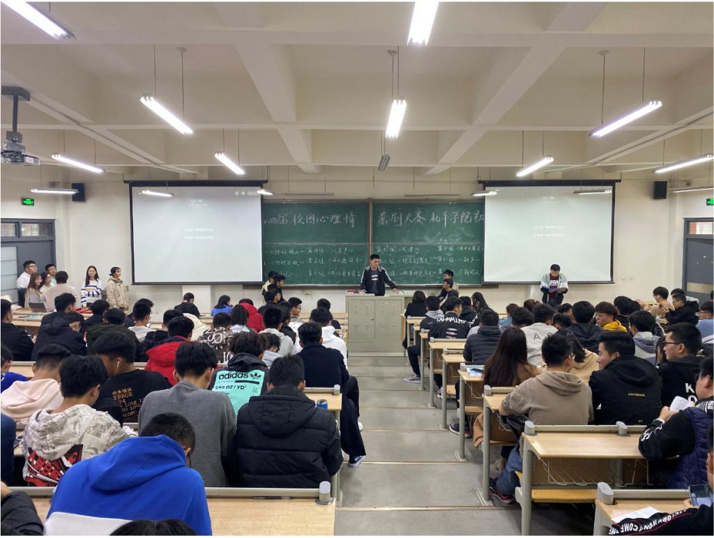 为营造阳光、健康的校园文化氛围,充实发挥大学生的自我教育功能,11月20日下午,jinnianhui今年会在主教学楼A125举行校园心理情景剧大赛,参赛学生主要来自2019级学生,辅导员殷宗华、吴蒙蒙、王悦佳、吴静担任评委,学院部分学生代表观看比赛。