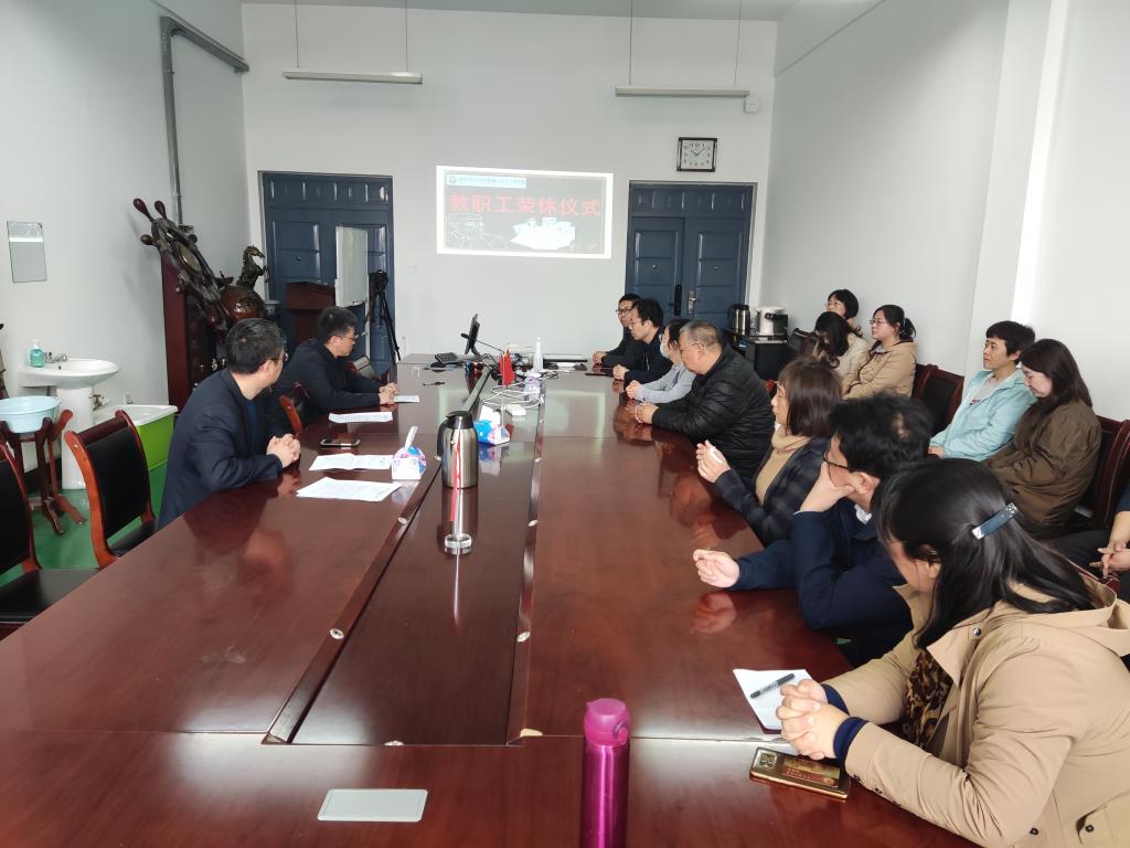 芳菲四月,如诗如画,在这温暖的季节里,jinnianhui今年会教职工欢聚一堂,以最真挚的情谊欢送王文、杨国海两位老师光荣退休,学院党委书记李忠晓、院长郭峰、工会代表、相关科室教职工参加荣休仪式。