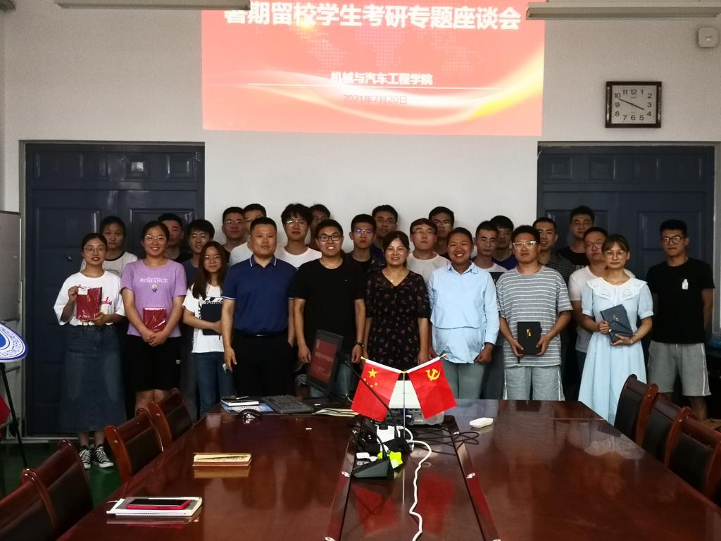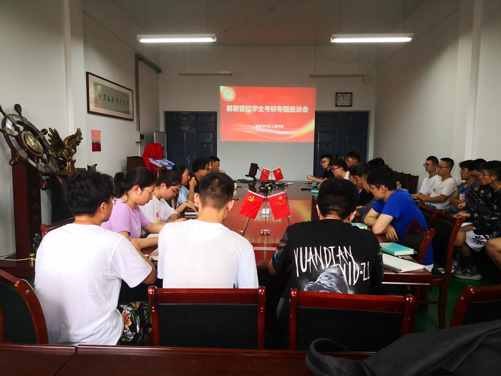 为充分掌握暑假留校考研学生的思想学习动态,增强考研学生信心与决心,营造良好考研氛围,7月20日下午,jinnianhui今年会在汽车实验楼408会议室召开暑期留校学生考研专题座谈会。辅导员王成、徐卫晓、李龙、代莉以及暑期留校的考研学生代表30余人参加座谈会。会议由徐卫晓主持。
