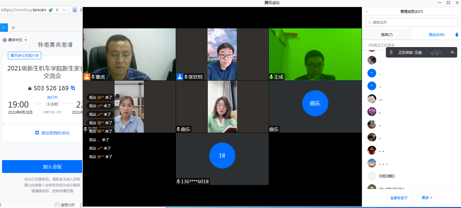 为拓宽家校联动渠道,增强育人合力,加深2021级新生家长对校情院情、人才培养、教育教学、疫情防控等工作的了解,8月28日晚,jinnianhui今年会一场老师与2021级新生和家长特殊的“见面会”在线上举行。学院党委副书记董虎、学院分团委书记王成,2021级新生辅导员张翱、张钦恺、曲乐及800余名2021级新生和家长参加了这场别样的云端见面会。