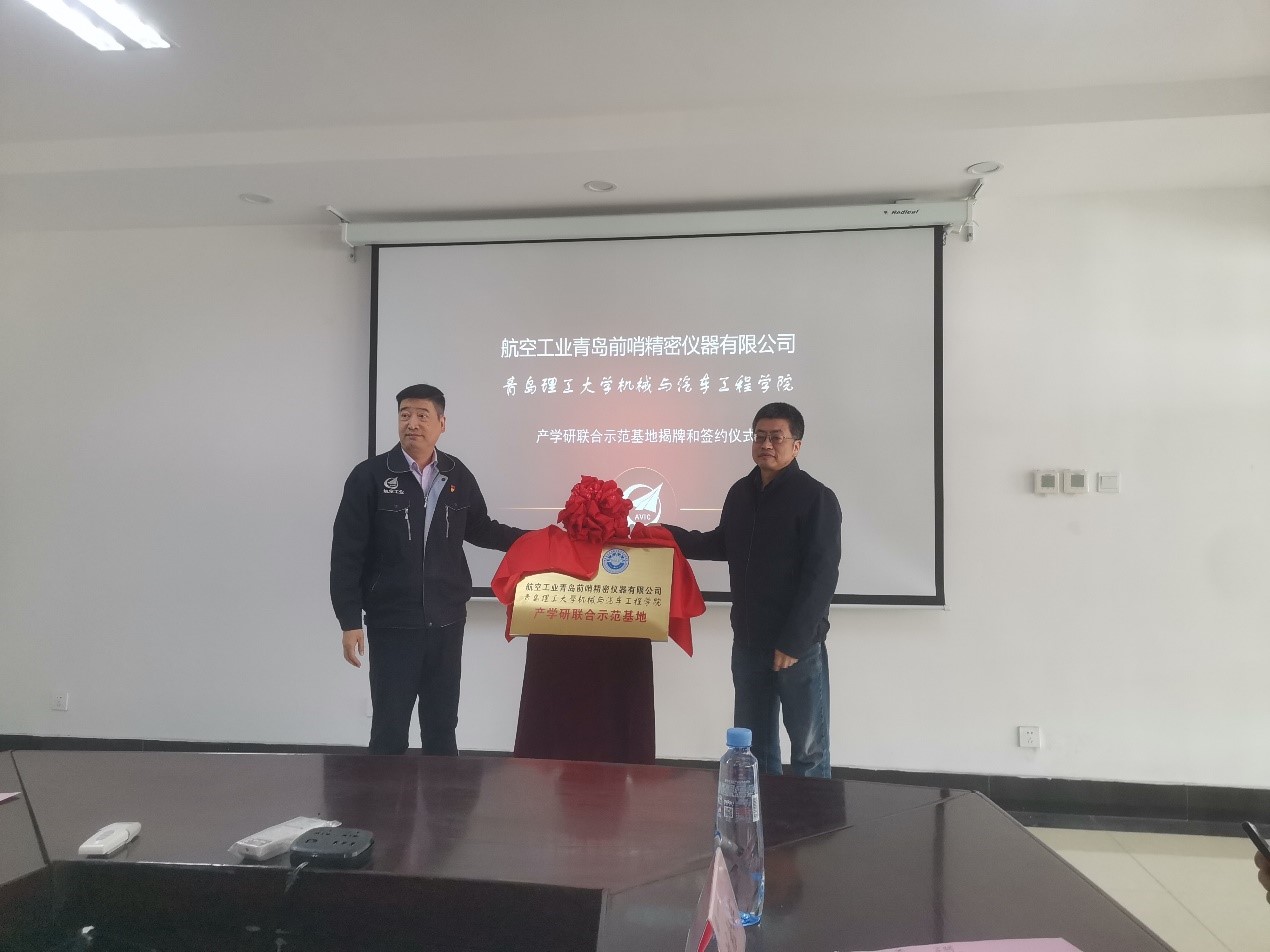 在座谈上,航空工业前哨集团党委书记、董事长、总经理黄群泽对jinnianhui今年会的到访表示了热烈欢迎,并介绍了航空工业前哨集团的整体情况。航空工业青岛前哨精密仪器有限公司总经理刘传亮介绍了双方团队前期的合作情况及后续合作计划。郭峰院长、李忠晓书记代表学院对航空工业前哨集团的热情接待表示了感谢,介绍了学院在机械、材料、测控等领域的人才培养情况和科研优势,认为学院与航空工业前哨集团的技术需求高度契合,希望通过本次交流能够进一步加强与航空工业前哨集团的深入合作。随后,郭峰院长与黄群泽董事长共同为产学研联合示范基地揭牌,陈成军副院长与刘传亮总经理分别代表各自单位签署了产学研合作协议。在双方领导的指导下,航空工业前哨仪器公司技术人员与今年会官网刘松年、赵娟团队就具体合作技术事宜进行了深入探讨,并就下一步的工作进行了部署。会后,在航空工业前哨公司领导陪同下,今年会官网与会教师参观了航空工业前哨仪器有限公司的实验室。