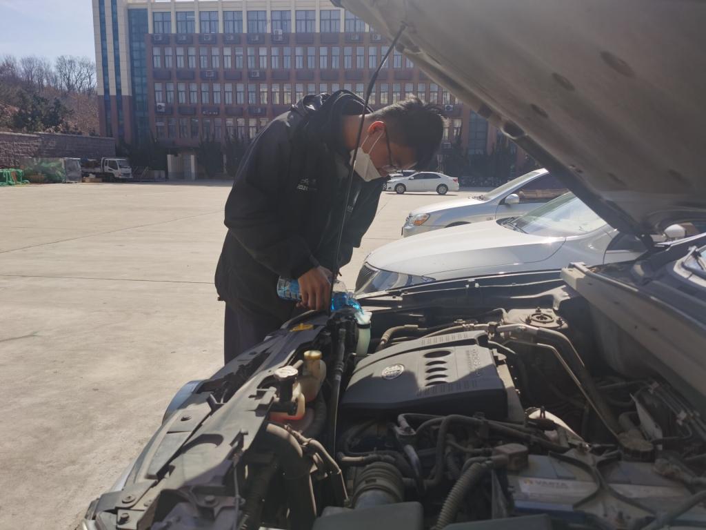 “这个车要补充玻璃水,左前轮胎需要充气……”,3月8日下午,在汽车实验楼前广场,春田车队“小车轮”志愿服务队队员们正在为学院女教师义务检修、保养车辆,获得了女老师的一致称赞。