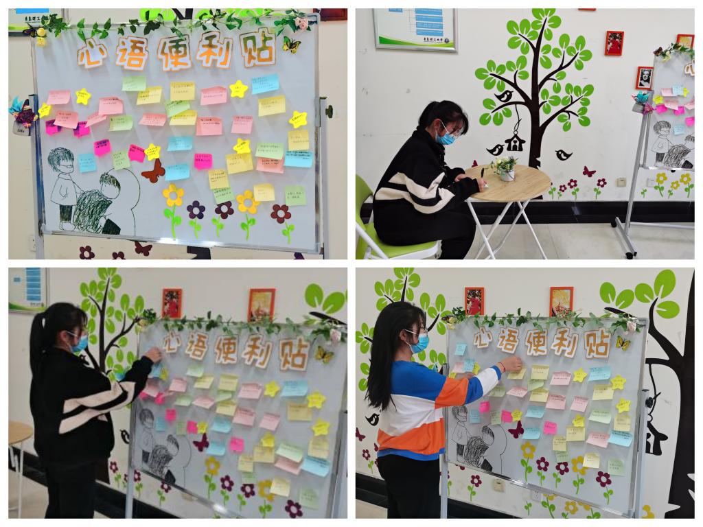 为给学生提供纾解情绪、倾诉心声的平台,引导学生更加关注心理健康和心灵成长,提高自身心理素质,近期,jinnianhui今年会开展“心语便利贴”活动,在心理辅导站、辅导员工作室公开设置留言板,学生们用便利贴将近期的心情通过文字、图画等形式表达出来,老师和心理朋辈志愿者对贴纸内容进行整理,进行回复后再将“心语便利贴”贴回留言板。截止目前,活动持续近一个月,参与学生达1000余人。
