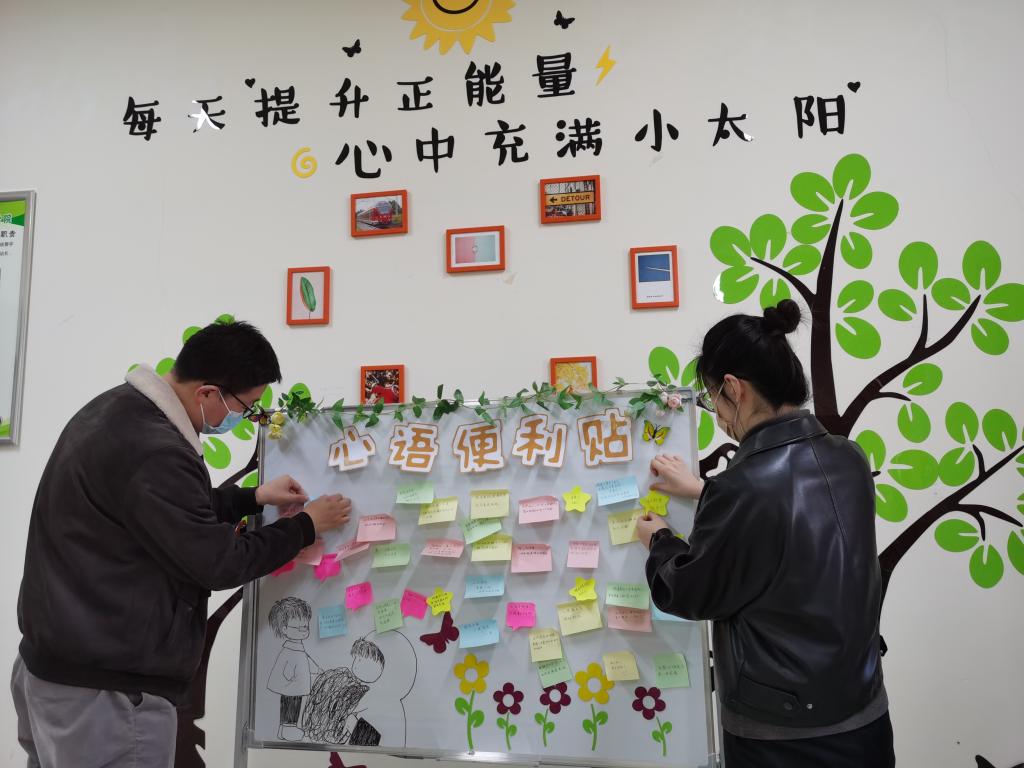 每天晚上,学院心理辅导站总是十分热闹,辅导员老师和心理朋辈志愿者聚在一起,一张张查看便利贴内容,一字一句进行回复,或解决问题,或进行鼓励,或分享感悟,帮助学生解开“心结”,打通“心脉”,驱散“心理阴霾”。“最近心情比较糟糕,纠结是调剂还是二战”、“觉得自己太能拖延了,不喜欢这样的自己”,同学们在留言板上畅所欲言,分享着近期生活的点点滴滴。“小Q同学,非常理解你的心情,出现这些情绪十分正常,不过我建议尽快调整心态,多关注调剂消息。”“完成比完美更重要,降低自我设限,这也是克服拖延症的一种办法,可以试试哦。”老师们通过小小便利贴,架起学生“联心桥”,了解学生困惑、感知学生心情、为学生排忧解难。