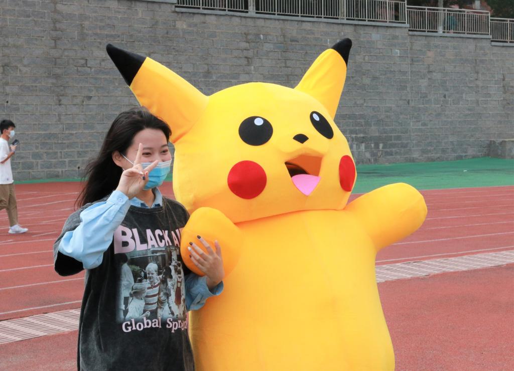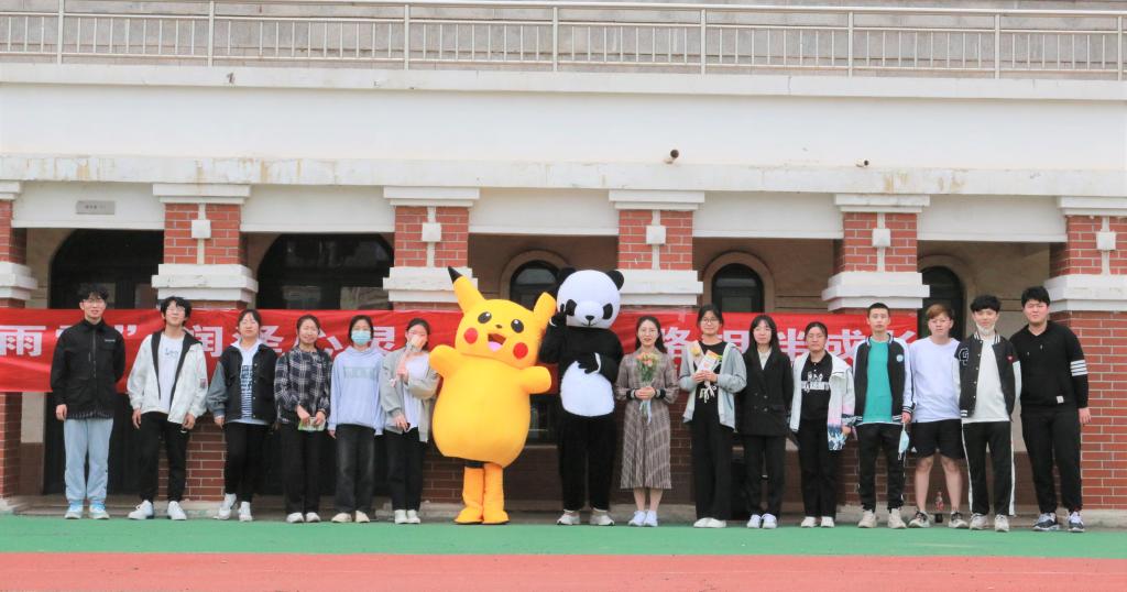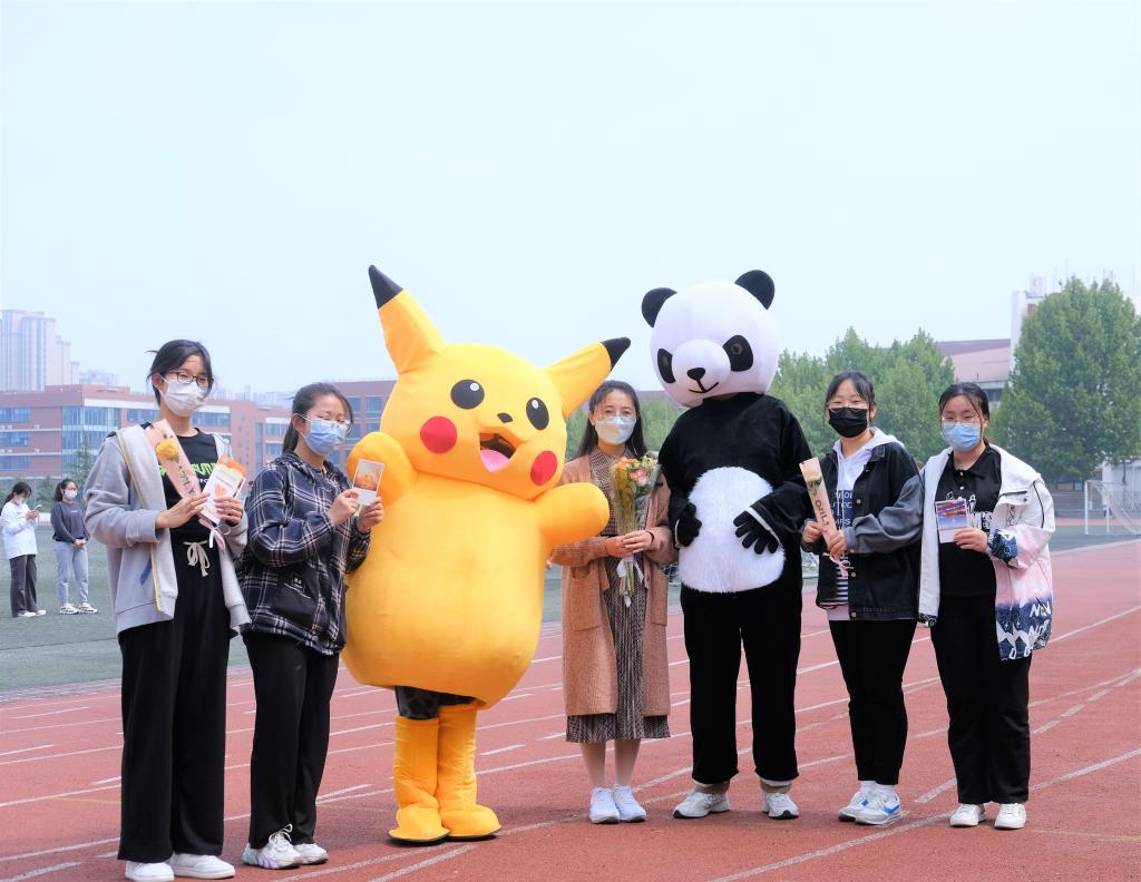 “拥抱组”志愿者身着卡通人物服装为路过的老师和同学们送去“爱的抱抱”,送上鲜花、明信片等小礼物,通过拥抱、合影、握手等方式,传递彼此间的关爱与温暖。“皮卡丘好可爱,谢谢你的拥抱”,“皮卡丘你该减肥啦”,操场上欢声笑语不断,同学们纷纷与“皮卡丘”打卡拥抱。“听到大家爽朗的笑声,心情很治愈,原来快乐是可以传递的”心协成员王政分享道。