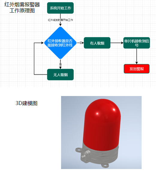 学生党员以实际行动拉起禁烟旗帜,以自身所长建设清新校园。机械182班赵子涵带领学生党员结合所学专业及研究课题,设计制作红外线烟雾报警器,目前已完成红外线报警器的三维建模。常用的离子型烟雾探测器采用电离场监测烟雾,该类设计灵敏度过高,在空气中有其它颗粒时容易产生误报现象。红外线发射器及接收器的工作方式打破了离子烟雾报警器局限性,完善了烟雾报警器工作机制;当空气中有烟雾存在时,红外线接收器接收到的光线变少,诱发电路电流发生改变,触发LED报警指示灯,并播放禁止吸烟宣传口号,以此劝诫吸烟人员停止吸烟。在无烟日来临之际,学生党员利用课余时间认真准备、刻苦钻研,以专业所长支持禁烟行动,充分展现出机车学子勇于创新、挑战自我和敢于担当的良好精神面貌。