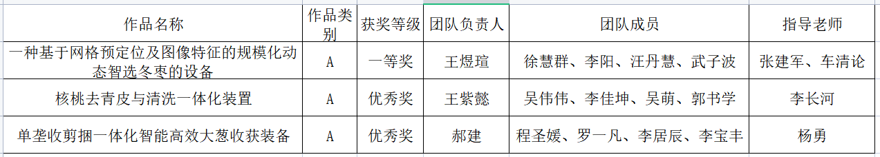 jinnianhui今年会组织了校内选拔赛,精心选配指导教师和参赛学生,参赛师生日夜备战,反复修改方案,打磨作品,调试程序。最终,动态智选冬枣设备、核桃去青皮与清洗一体化装置、高校大葱收获装备等智能农业装备脱颖而出,取得优异成绩。