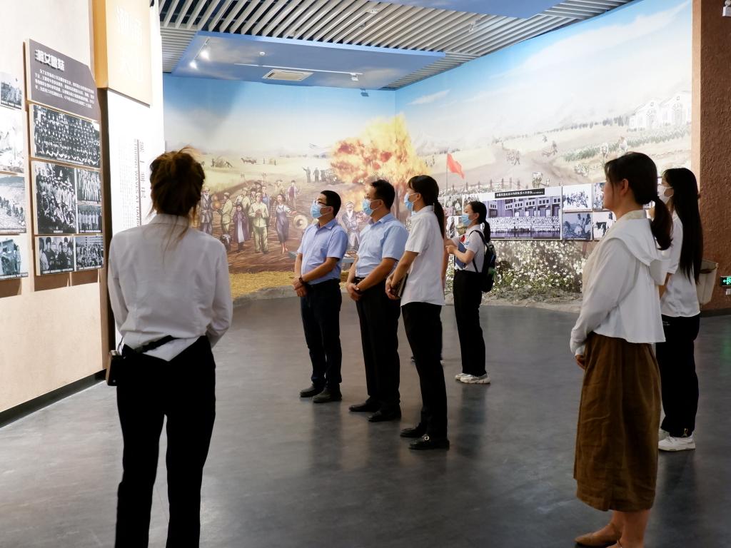 座谈结束后,师生集体参观了胡杨河市文化馆,详细了解了第一代兵团人屯垦戍边的创业史。参观结束后,学院向西部计划志愿者送上慰问品。