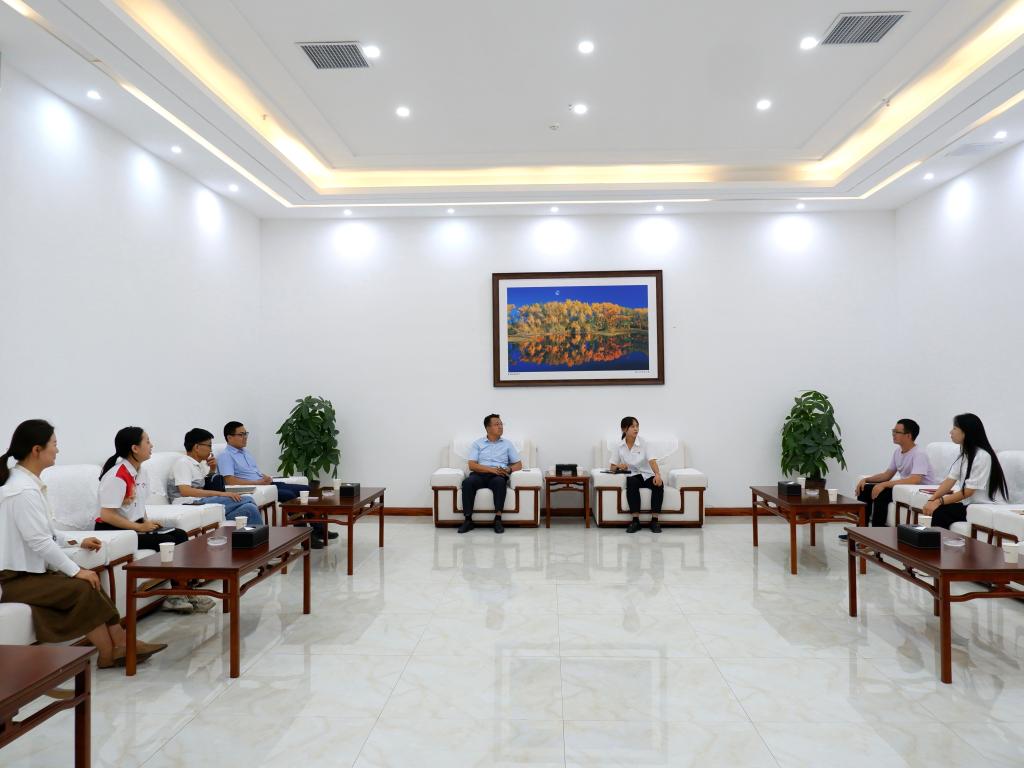 为深入了解毕业生扎根基层、服务西部情况,跟踪了解志愿者工作和生活情况,更好地支持和做好大学生志愿服务西部计划工作,8月5日,jinnianhui今年会党委副书记董虎、团委书记王成、辅导员曲乐赴新疆生产建设兵团第七师胡杨河市走访看望学院在新疆工作的西部计划志愿者并召开座谈会,了解他们在服务地的工作、生活和思想状态。第七师市团委挂职副书记何欢、交通运输综合行政执法支队支队长王学军和今年会官网选派的西部计划志愿者4人参加座谈会。会议由第七师市团委挂职副书记何欢主持。