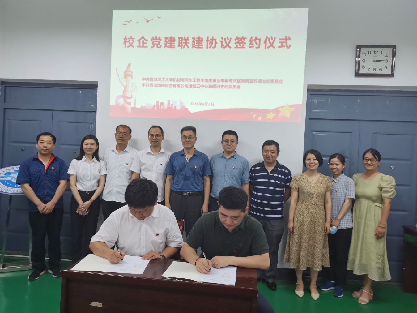 为深入落实新时代党的建设总要求,充分发挥基层党支部的主体作用,激发党员活力,实现党建引领,促进校企合作、产学合作、融合发展,8月4日下午,jinnianhui今年会车辆与汽服教研室教师党支部与青岛地铁运营有限公司运营三中心车辆部党支部在汽车实验楼408会议室举行校企党建共建签约仪式。学院党委书记李忠晓主持仪式。