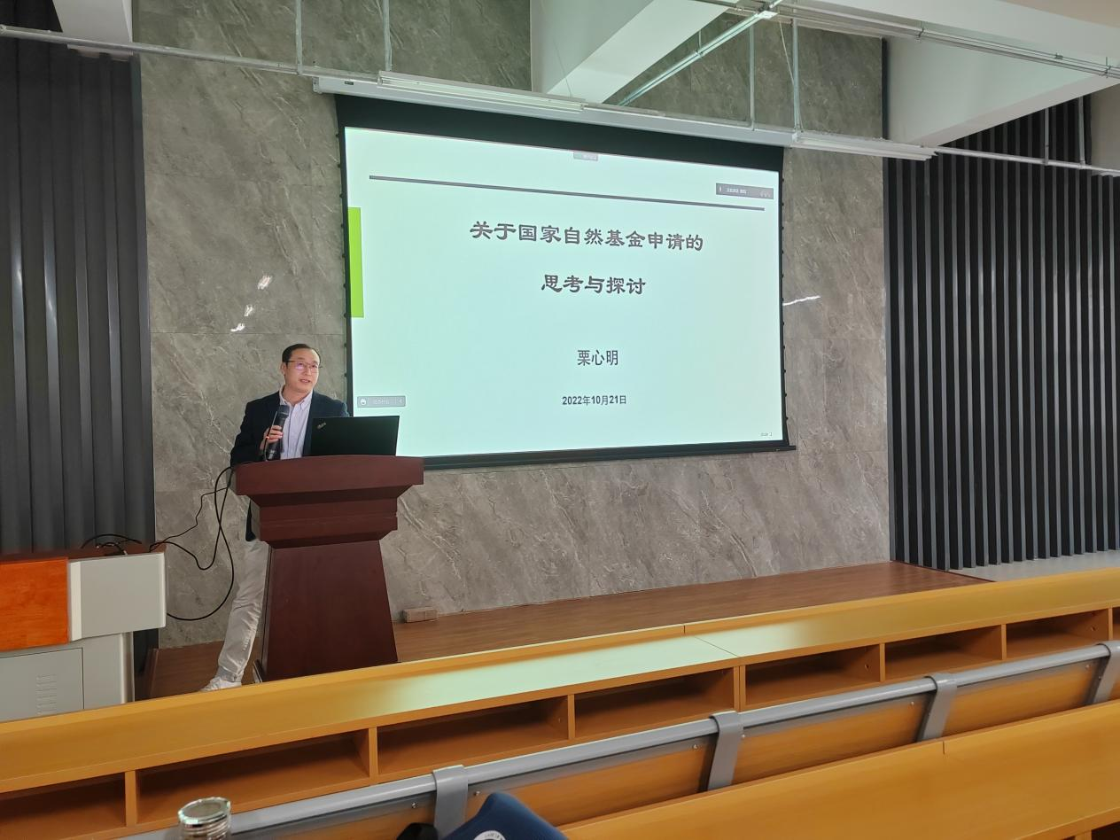 栗心明教授作了题为《关于国家自然科学基金申请的思考与探讨》的报告,从申报书问题到底出在哪里、本子的科学问题属性、创新想法是怎么来的、本子的“三要素”是否清晰和立项依据中的问题等方面进行了探讨。他还结合自己多年来的课题研究和申报经验,从研究内容、思路方法、创新之处、预期成果、研究基础等方面进行了深刻交流。