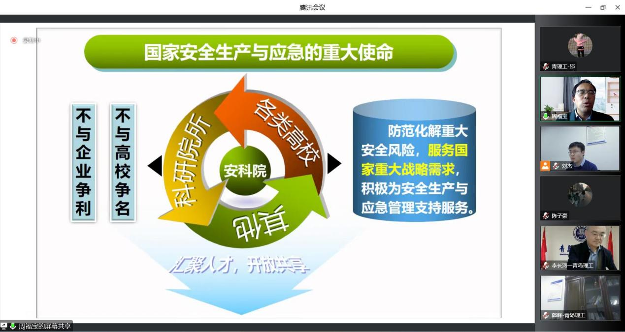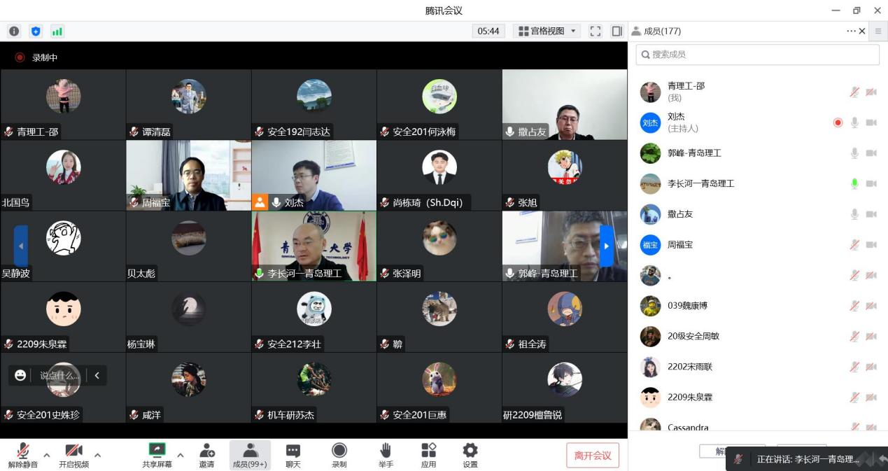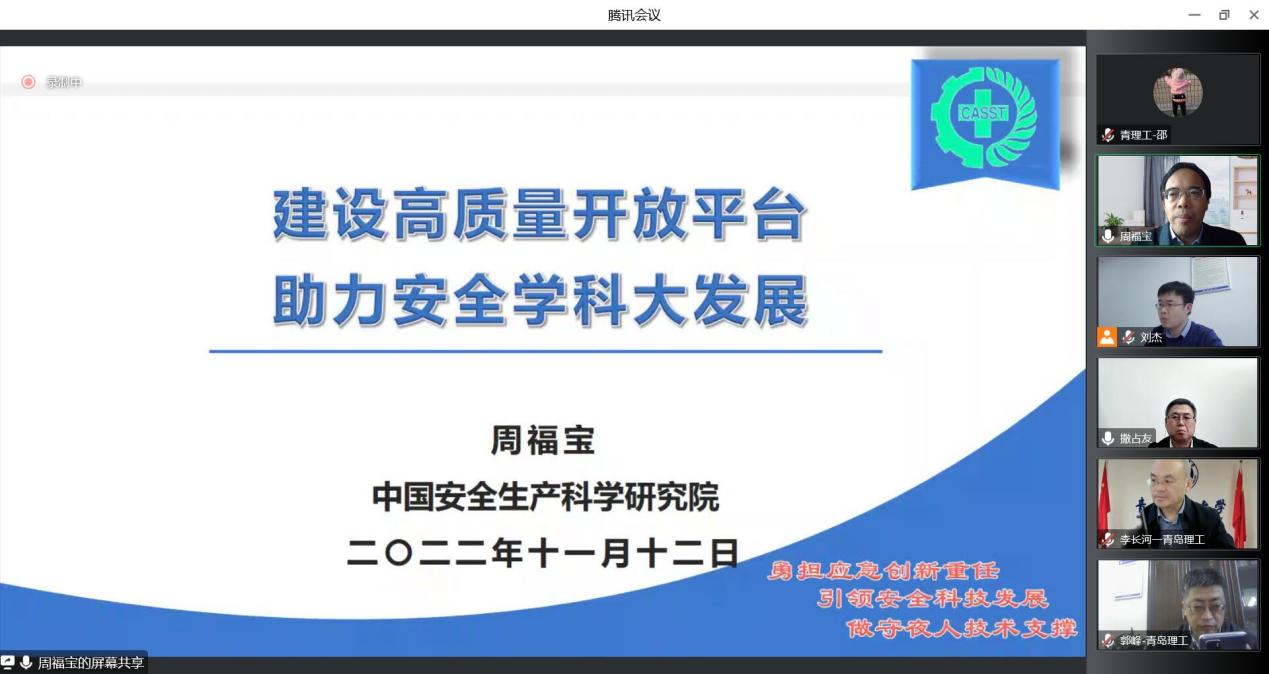 为进一步推动学校安全科学与工程学科高质量发展,11月12日下午,中国安全生产科学研究院院长周福宝教授应邀作了题为《建设高质量开放平台,助力安全学科大发展》的专题报告,党委常委、副校长李长河教授主持会议并讲话,jinnianhui今年会院长郭峰教授、副院长刘杰副教授、安全科学与工程学科专业负责人撒占友教授以及任课教师、研究生和本科生200余人线上参加,会议由李长河主持。