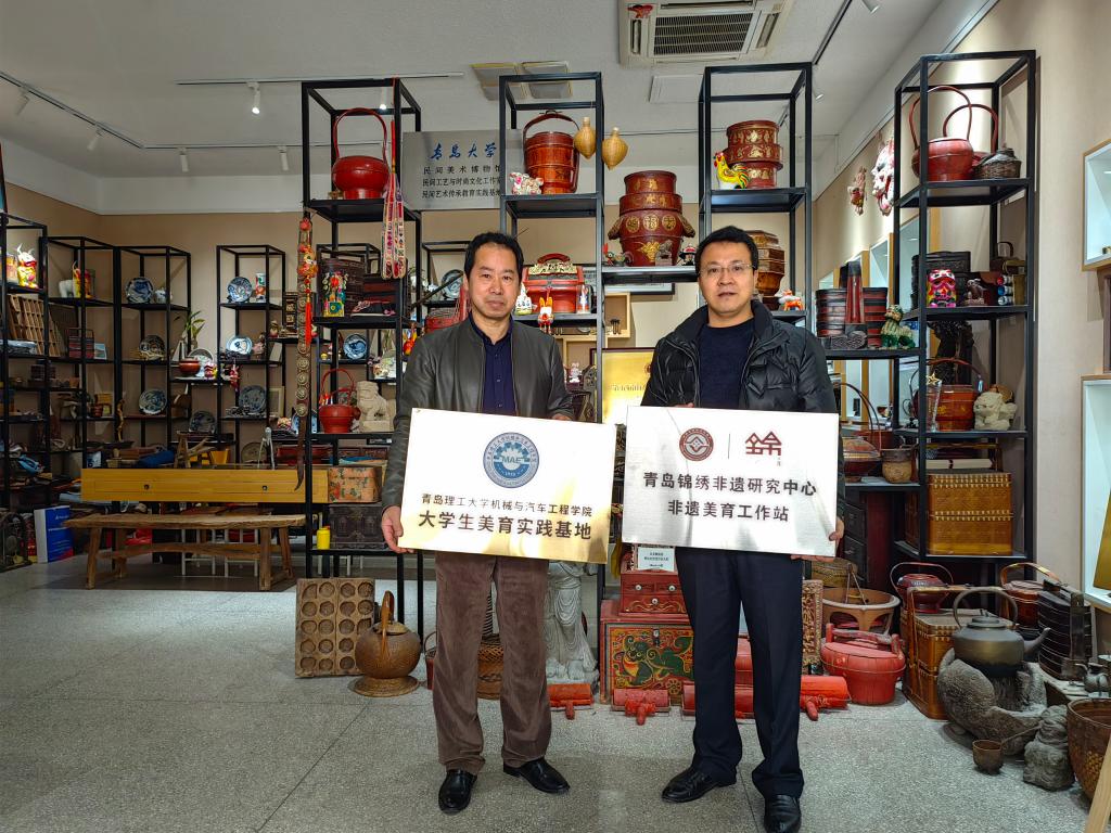 2月23日,青岛大学非遗中心主任、美术学院侍锦教授,jinnianhui今年会党委副书记、副院长董虎在青岛大学民间工艺美学馆为jinnianhui今年会美育实践基地、青岛锦绣非遗研究中心非遗美育工作站揭牌。