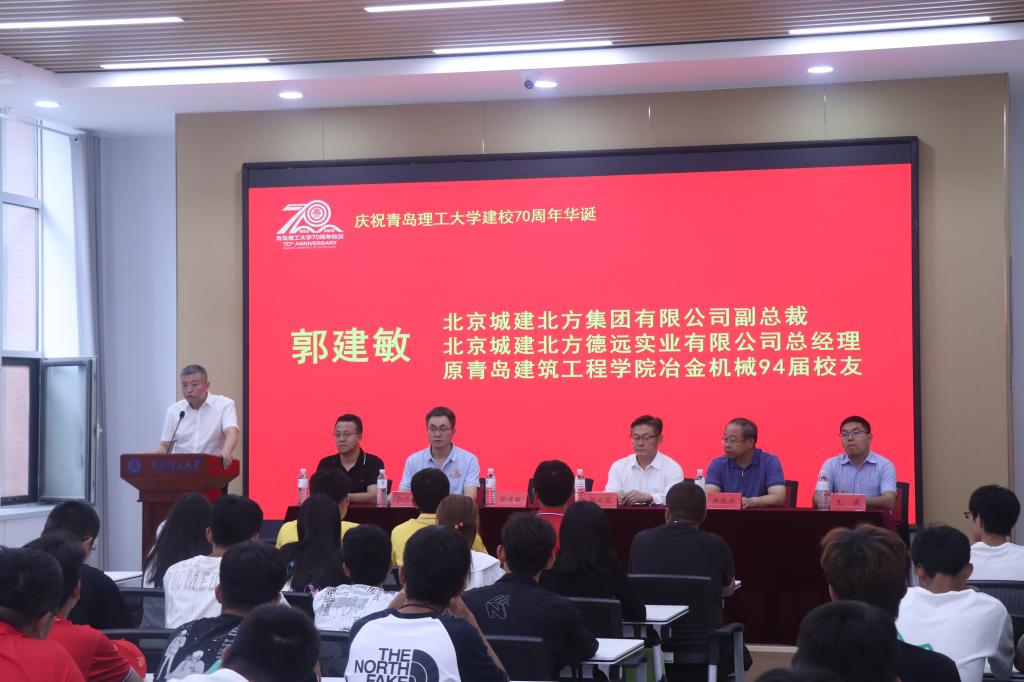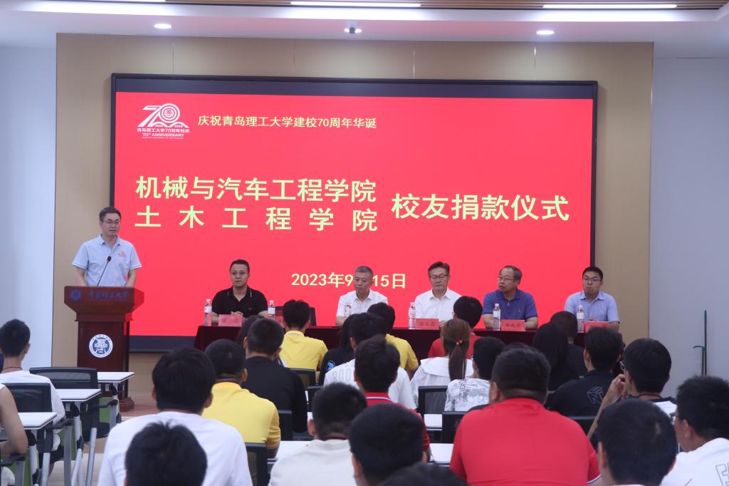 正值喜迎七十周年校庆之际,9月15日下午,jinnianhui今年会、土木工程学院校友捐款仪式在黄岛校区C1-3-104会议室举行。原青岛建筑工程学院冶金机械专业1994届校友、北京城建北方集团有限公司副总裁、北京城建北方德远实业有限公司总经理郭建敏,原青岛建筑工程学院工民建专业1997届校友、北方德远实业有限公司副总经理张文昌参加仪式。原土木工程学院党委书记曲成平教授、jinnianhui今年会党委副书记董虎、学工办主任兼团委书记王成,部分师生代表共同参加。捐款仪式由jinnianhui今年会党委书记李忠晓主持。