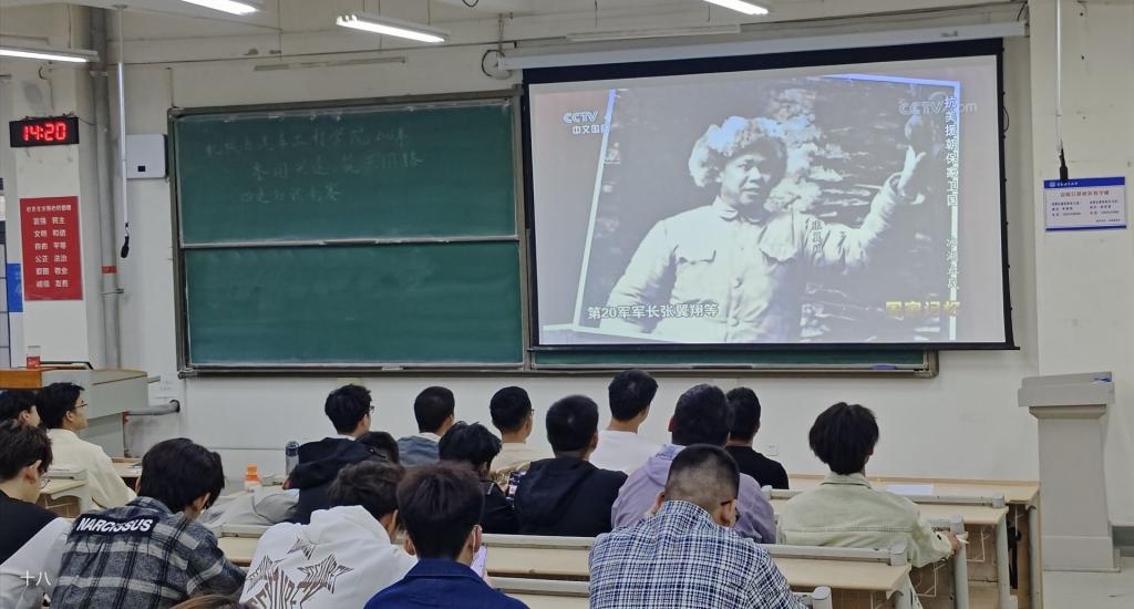 观抗美援朝史,增强青年爱国情。10月25日是抗美援朝纪念日,学院组织新生团学干部青年集中观看抗美援朝胜利七十周年纪录片。机械225班韩荟:“今天的幸福生活来之不易,无数志愿军用生命为祖国发展争取了宝贵时间,他们的事迹让我倍加珍惜现在的学习机会,作为新时代青年我要肩负历史责任与使命,更加努力的学好知识练就本领,以祖国更好的发展致敬“最可爱的人”。