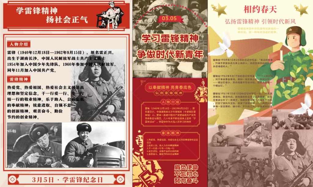 寻雷锋足迹,时代楷模树“锋”采 60多年来,伴随着“学雷锋、树新风”活动、学雷锋精神做“四有”青年活动、青年志愿者行动等深入开展,雷锋精神的种子播撒在一代代青少年心中,不同时代孕育出更多鲜活的“雷锋”。学院积极开展弘扬雷锋精神宣讲活动,号召学生通过影像,纸笔等形式记录身边新“雷锋故事”,累计收到各类志愿服务照片50余张,讲述身边的雷锋故事10余篇。(撰稿:张钦恺;审核: 李忠晓、董虎 )