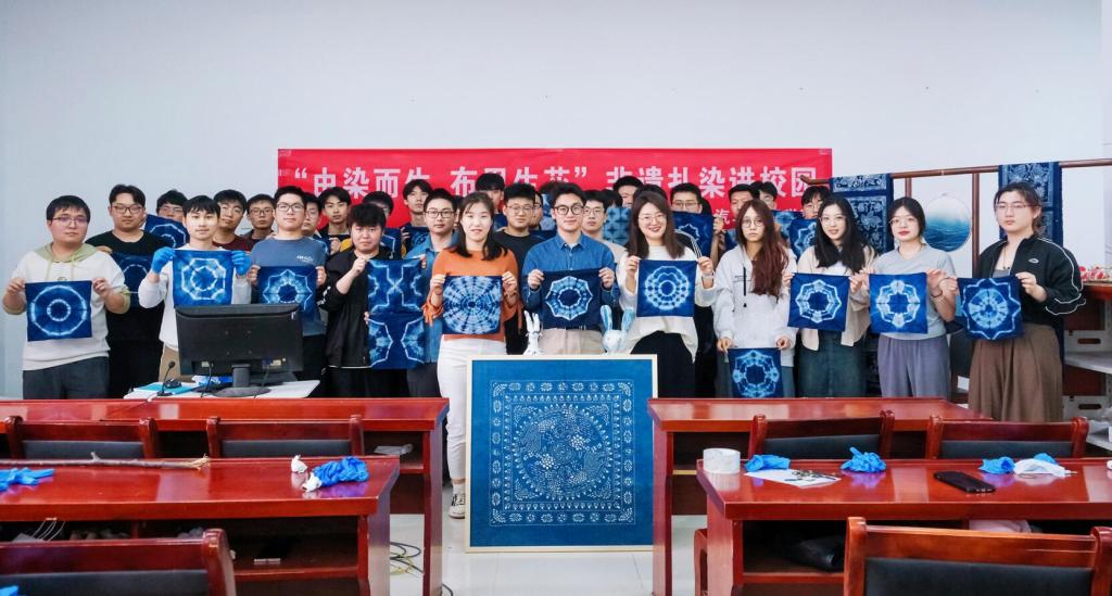 “‘撷’撮采线结之,而后染色。即染,则解其结,凡结处皆原色,余则入染矣,其色斑斓。”这是古书上对扎染的生动描写。活动现场,辅导员张凤波详细介绍了扎染的起源、种类和特点,并从设计构思到扎花技法,再到染色技艺,带领学生们亲自动手实践,并在实践过程中不断激发学生的想象力和创造力,使每位学生都参与其中,极大地增强了学生们的学习兴趣。