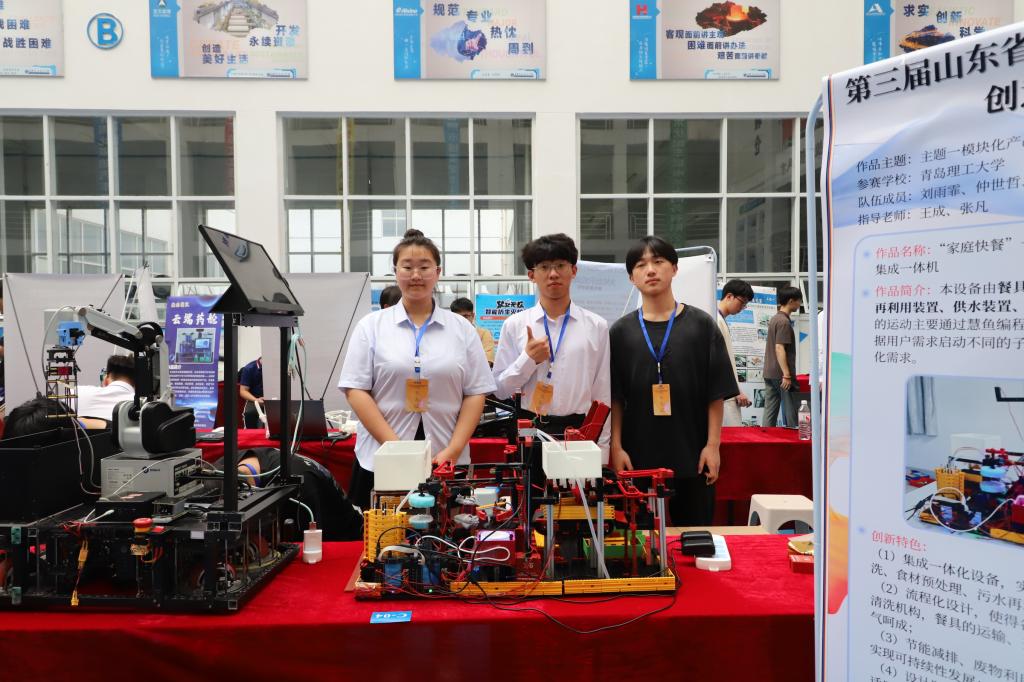 大赛以“更好、更快、更强”为主题,以培养学生提出问题能力为起点,形成问题提出、解决方案、技术创新和后期孵化一体化的人才培育链条,助力机器人相关人才培养成效显著。本次竞赛自2024年3月份启动,设有国赛主题、自由主题与企业主题。经过竞赛组委会初赛,推选出37所高校200余项作品入围决赛。学校共计申报参赛11项,经专家初评、决赛答辩等环节,今年会官网学生累计获得山东赛区一等奖5项,二等奖5项,三等奖1项。其中,“智能花卉培养一体机”(学生:李静,张正志)、“味界智绘师--智能果蔬沙拉机”(学生:杨俊辉,常车乐玺)、“家庭快餐--家用式餐具清洗及食材预处理集成一体机”(学生:刘雨霏)、“一种基于机器视觉自主学习的果蔬洗切一体机器”(学生:王俊豪,韩荟)、“清洁之道:一机三系统,洗烘一体智能鞋履护理新标杆”(学生:杨俊毅,刘彦成)获得山东赛区一等奖;“全域洁净--面向狭窄场地的多轴轮式地面清洁机器人” (学生:仲世哲,董骐瑞)、“儿童的小帮手--智能玩具收纳机器人”(学生:仇永欣,刘振兵)、“宠趣管家--智能宠物护理机器人”(学生:王巡,陈聪迎)、“基于越疆机械臂的老人智能药箱”(学生:张菡森)、“服药智伴多功能智慧理药机器人”(学生:黄泽楠,黄育锐)获得山东赛区二等奖,“基于家居背景服务于失能群体的可爬楼床椅设计”(学生:徐明杰)获得山东赛区三等奖。
