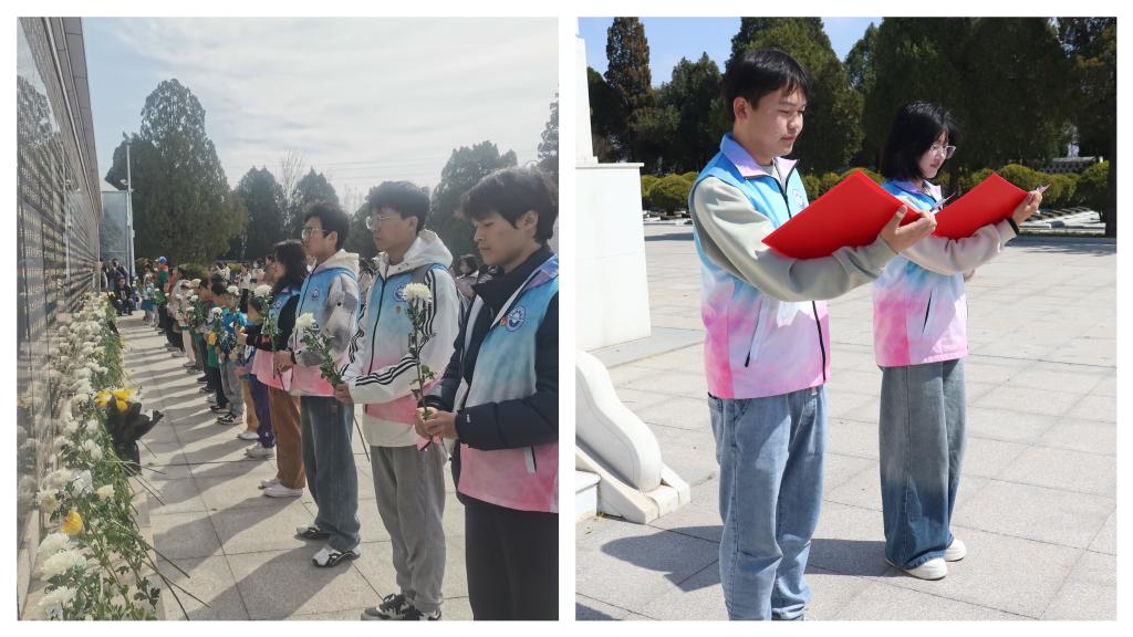 历史“活”起来,沉浸式教育触动心灵。活动创新采用“祭奠+宣讲+实践”三位一体模式,以“星火燎原”“浴血抗战”“黎明前夜”“薪火相传”等主题串联红色历史。宣讲团成员结合史料与实物,生动讲述本土革命故事,让历史不再是书本上的文字,而是可触可感的鲜活记忆。纪念碑前,jinnianhui今年会学子以《永不褪色的守望》的朗诵叩击人心。青老两代宣讲者共同立下誓言:“做一粒火种,让信仰照亮每个角落!”大学生与小学生共同向革命烈士献上菊花,在春风中舒展成朵朵未寄出的思念,让抽象的历史化为指尖的温度。