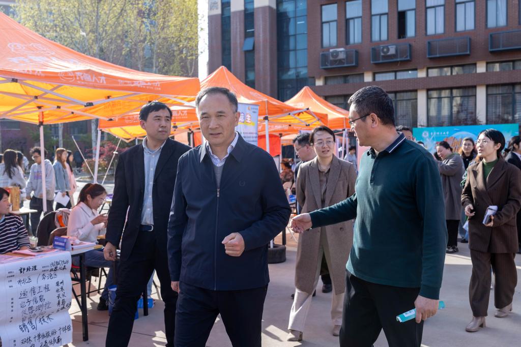 为深入贯彻落实党中央“稳就业”“保就业”决策部署,推动学科交叉赋能高质量就业,4月16日,jinnianhui今年会、信息与控制工程学院在汽车实验楼南广场举办“笃‘信’前行,‘机’遇共擎”2025届毕业生专场招聘会。校党委常委、副校长郭建锋到招聘会现场调研指导。豪迈集团、山东东明石化、青岛海容冷链等82家行业领军企业携2500余个岗位参加招聘会,吸引近2000余名毕业生到场。