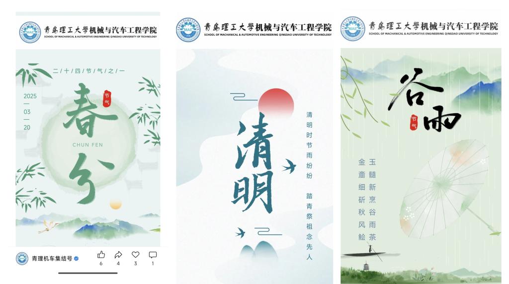 在每一个节气,向同学们投递二十四节气的由来、习俗,以及与之相关的诗词、谚语等内容。通过精美的图文排版、生动有趣的文字描述,让同学们深入了解节气背后蕴含的文化内涵和古人的智慧结晶。此外,学院还鼓励同学们结合节气特点,开展摄影、绘画、手工艺品制作等活动,用艺术的形式展现节气之美,让传统节气文化在青年学生中焕发新的活力。