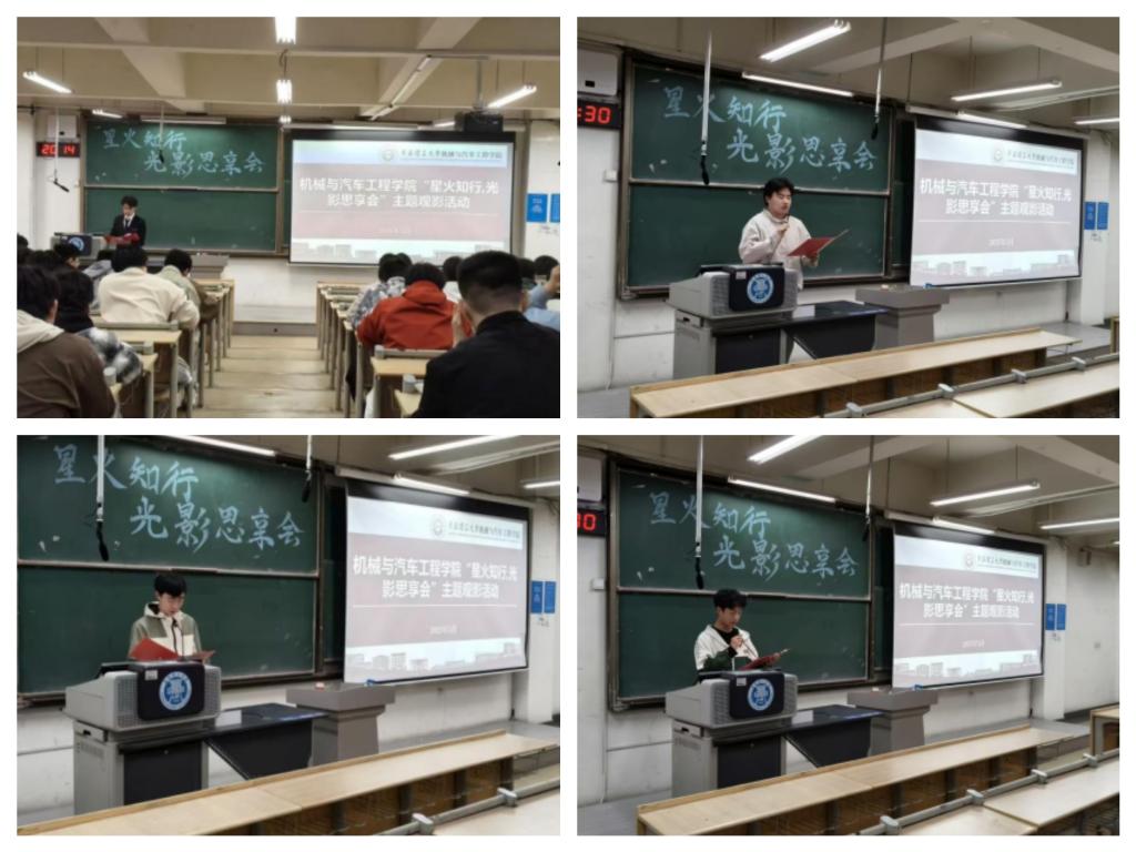 机械243张海航在《传承五四精神·激扬青春力量》发言中,结合习近平总书记对青年的寄语,号召同学们继承“爱国、进步、民主、科学”的五四精神内核,在新时代勇担复兴重任。机械246杨思远在《以青春之我·创青春中国》的分享中提出:“当代青年要像百年前的五四先驱那样,既怀揣‘以天下为己任’的胸襟,又锤炼‘绝知此事要躬行’的实干精神”。测控241王麟则以《让五四精神绽放时代光芒》为题,结合学院学科特色,倡议同学们将个人成长熔铸于国家发展,用机车人的工匠精神书写新时代青春答卷。活动结束后,参会同学不仅提交了深刻的学习感悟,更形成了《青春建功行动清单》。同学们纷纷表示,通过光影艺术深切感受到跨越百年的青春共鸣,更加坚定了“强国有我”的使命担当。