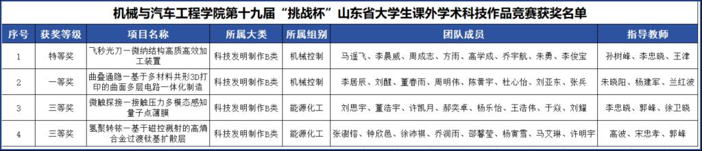 项目《飞秒光刀-微纳结构高质高效加工制造工具》(团队成员:马遥飞、李晨威、周成志、方雨、高学成、乔宇航、朱勇、李俊宝。指导老师:孙树峰、李忠晓、王津)获得省级特等奖;《曲叠通隐—基于多材料共形3D打印的曲面多层电路一体化制造》(团队成员:李居辰、刘醒、董春雨、周明伟、陈黄宇、杜心怡、刘亚东、张兵。指导教师:朱晓阳、杨建军、兰红波)获得省级一等奖。这些成绩充分展现了今年会官网在创新人才培养方面的体系化成果,以及师生团队敢于挑战、勇于突破的实践精神。