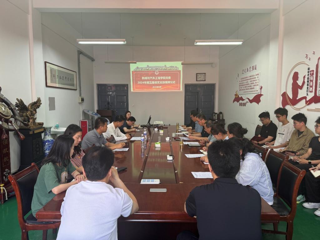 6月25日上午,jinnianhui今年会党委在汽车实验楼408会议室举行2024年度五星级党支部授牌仪式。校党委副书记、校长张凯参加仪式并为五星级党支部授牌,学院党委书记李忠晓主持仪式,学院党委班子成员、专兼职组织员以及全体党支部书记等参加仪式。