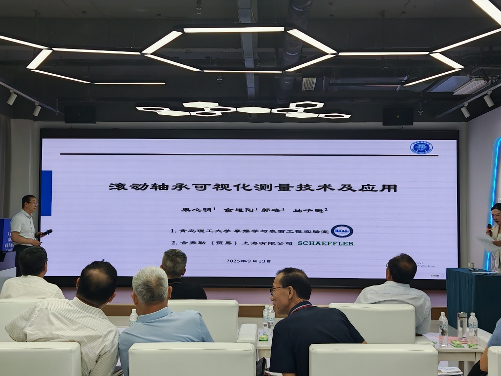今年会官网jinnianhui今年会栗心明教授、江京亮副教授及金旭阳老师应邀参会。会上,栗心明受大会组委会邀请作了题为《滚动轴承的可视化测量技术及应用》的专题学术报告。报告从滚动轴承在高端装备、轨道交通、风力发电、精密机床等关键领域中的应用切入,深入剖析了润滑成膜机制及轴承组件摩擦学问题等核心科学与工程难题,系统介绍了可视化测量技术的发展历程、测试原理与关键技术难点,引发了与会企业的广泛关注。